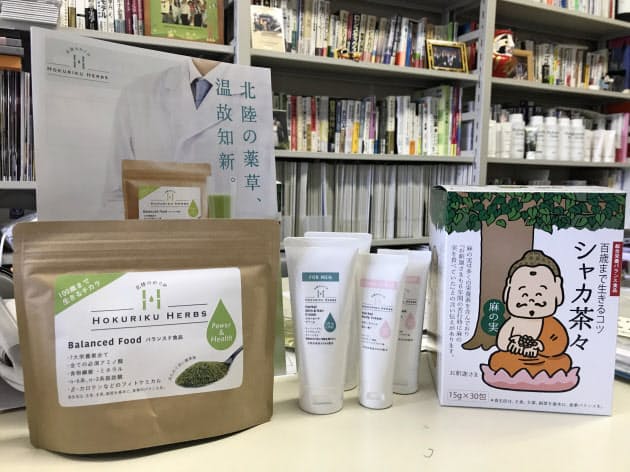 北陸大学は牛乳などに溶かして飲む薬草の健康パウダー「シャカ茶々」を販売している。薬学部の研究グループが「カワラケツメイ」という薬草に骨を丈夫にする成分が含まれていることを発見し、商品化した。