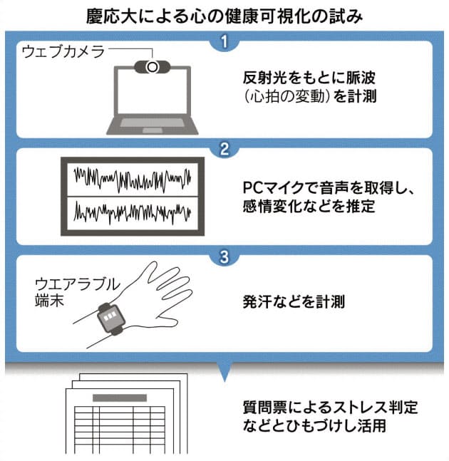 「心身共に健康が一番」。わかってはいても、職場などで気付かぬうちに身も心もむしばまれていく人は多い。新型コロナウイルス感染症対策で在宅勤務や外出自粛が増え、コミュニケーションが減りがちな現在は、なおさら健康管理が大切だ。社員の健康度や幸福度を「見える化」することによって高め、組織全体の活性化にも生かそうという試みが始まっている。