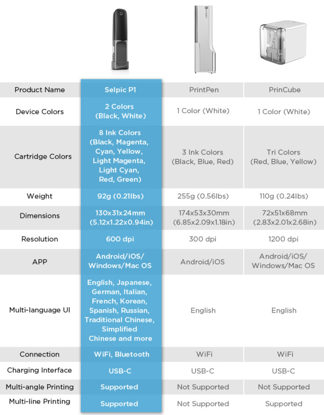 まずモバイルプリンターについて軽く説明すると、スマホ等で入力した文字やデータを手軽に紙などにプリントできるデバイスです。「Selpic P1」の最大の特徴は全長130mmで重さ92gという小型軽量なボディ。