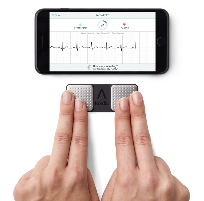 카디아모바일은 와이어나 패치가 없는 가벼운 휴대 스틱 타입으로 양쪽 손가락을 올려 간편하게 심전도 측정이 가능하다. 측정 후에는 스마트폰 카디아 앱(Kardia App)에 정보가 전달되며 AI 기반 알고리즘을 통해 실시간으로 심전도 데이터를 분석, 이를 토대로 의사의 진단 자료로 활용될 수 있다. 또한 이용자들은 해당 데이터를 자유롭게 저장, 공유하고 출력해 꾸준하고 체계적인 관리가 가능하다.