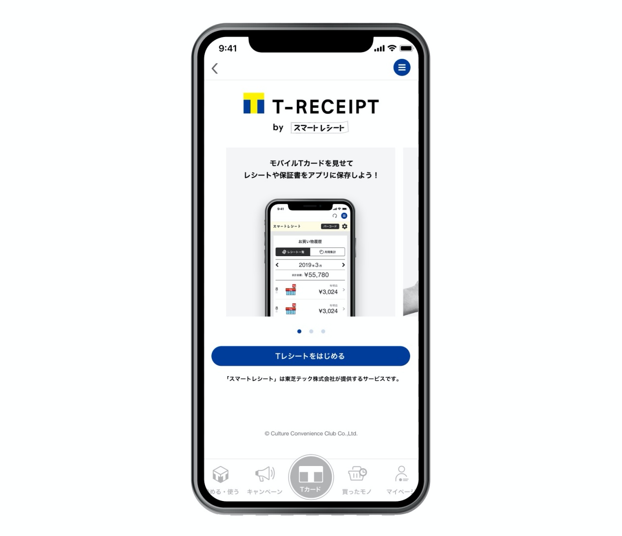 Tポイント・ジャパンは、紙のレシートを電子化して利用客のスマホ画面に表示するサービス「Tレシート byスマートレシート」を開始します。