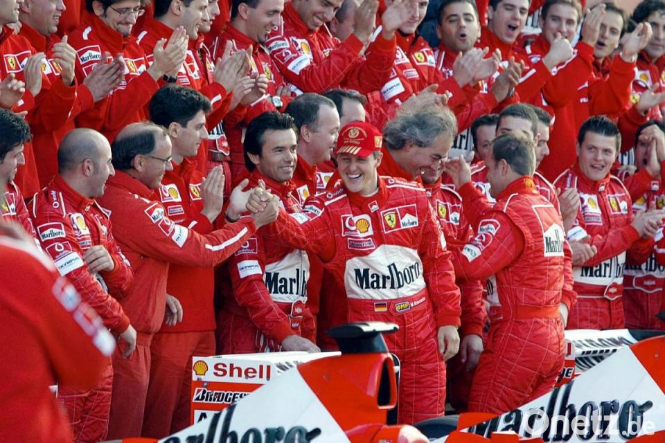 Schumacher gewann mit der Scuderia von 2000 bis 2004 fünf Fahrertitel nacheinander. Zudem führte der mittlerweile 51 Jahre alte Rekordweltmeister den Rennstall mit dem berühmten roten Auto zu sechs Konstrukteurs-Triumphen von 1999 bis 2004.