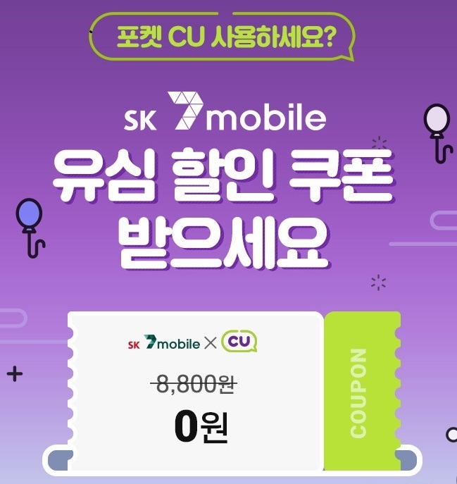 'SK세븐모바일' 무약정 유심, '포켓CU'에서 100% 할인쿠폰 지급 - 청년일보