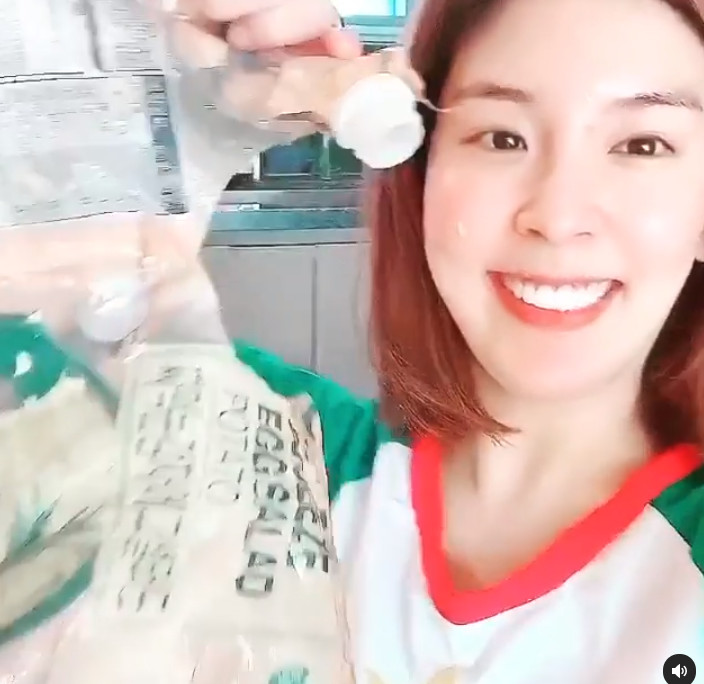 영상에는 함연지가 감자 샐러드 포장지를 들고 인증하는 모습이 담겼다. 함연지는 "잘라서 다 핥아먹었다"면서 장난스레 웃고있다. 함연지의 말대로 봉투를 뜯어 안쪽까지 깔끔하게 먹어 깨끗해진 포장지가 눈길을 끈다.