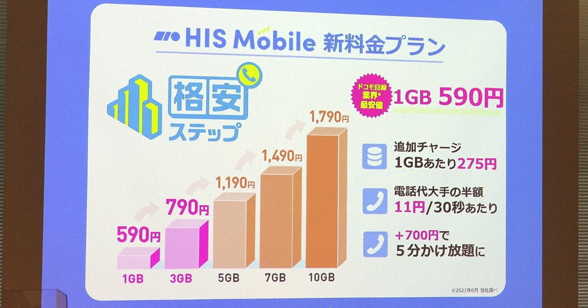 大手旅行会社HIS傘下のHISモバイルが、低容量の利用者に向けた新料金プラン「格安ステップ」を始めた。低容量の中でも月1ギガバイト(GB)と3GBという特に容量の少ないプランの料金を競合他社より割安にしたのが特徴で、通話料も30秒で11円と他社の半額に抑えた。価格の安いSIMフリー端末の販売も強化しており、格安スマホ事業を本格化する構えだ。