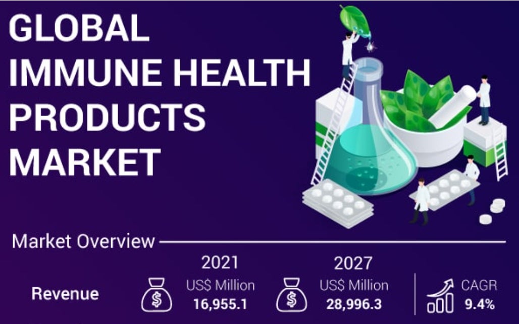 免疫健康製品の世界市場は、2027年までに289億9630万米ドルに達すると予測されています。同市場は予測期間中、年平均成長率9.4%を記録すると予測されています。
