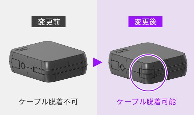 というお声から、標準装備のUSB-C to USB-C ケーブルを根元から交換可能な充電ケーブルに仕様変更を行います。